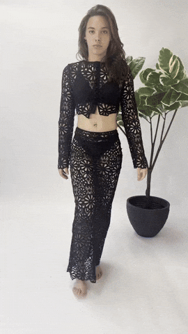 Deze set bestaat uit een luchtige cropped top met bijpassende flowy rok die elegant meebeweegt bij elke stap.